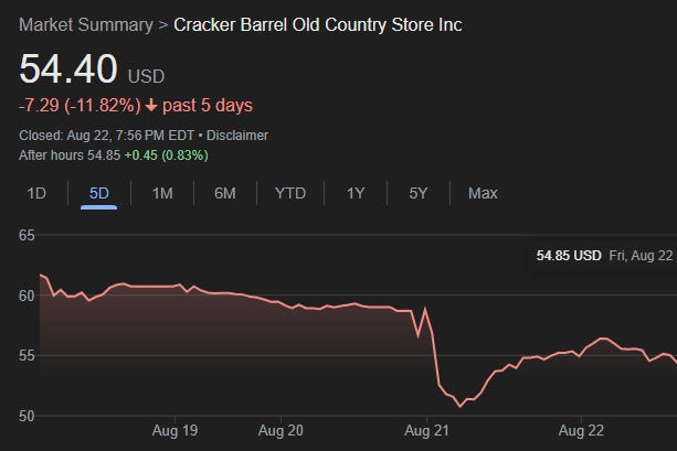 Cracker Barrel has never appealed to me. I’ve eaten there twice in my life with the last time being about 15 years ago.