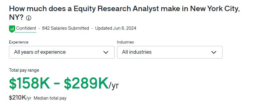 For funsies let’s look at the average salaries of equity analysts and software engineers (chosen for no reason other than they’re white collar-sounding job titles).