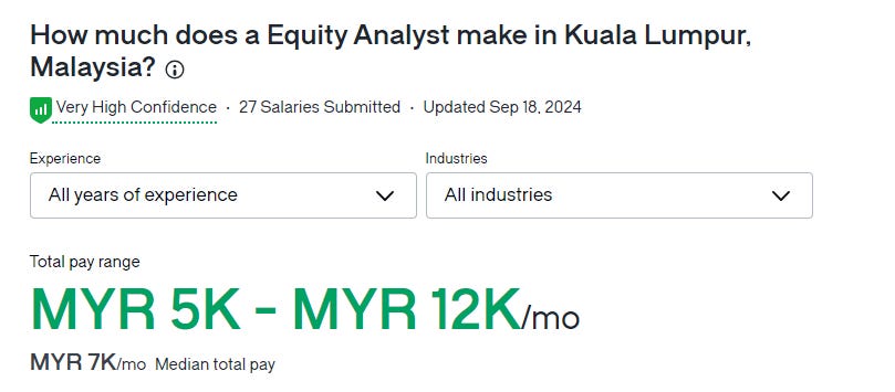 In Kuala Lumpur, an equity analyst makes the equivalent of $18,785.64 USD per year.
