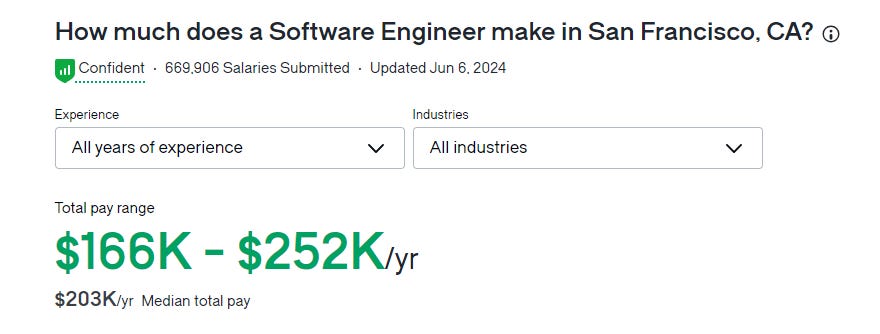In San Francisco, people with the exact same job title make $203,000 USD per year.