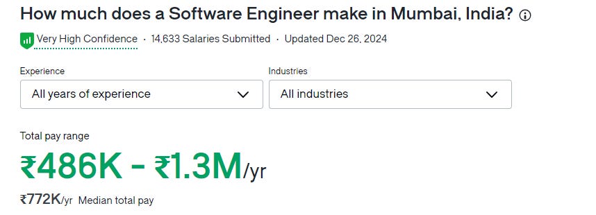 A software engineer in Mumbai makes $9,040.50 USD per year.