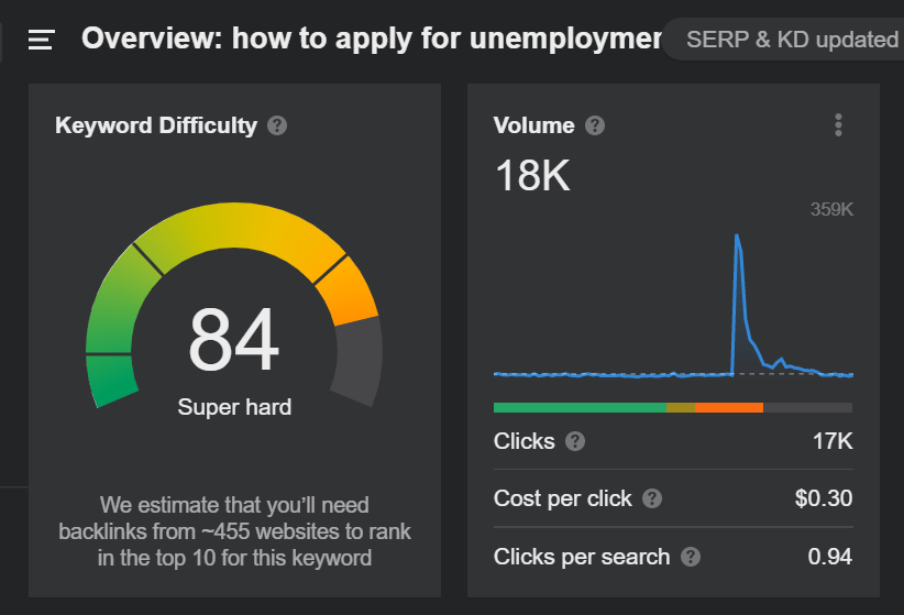 The search volume for “how to apply for unemployment” has declined to pre-COVID levels.