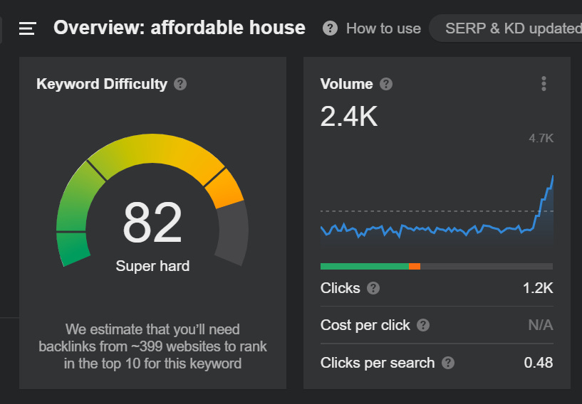 Queries for “affordable house” are through the roof. Searches for “cheap house” are rising as well.