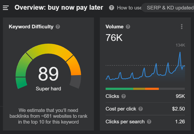 The search volume for terms relating to buy now, pay later has been increasing over the past few years.